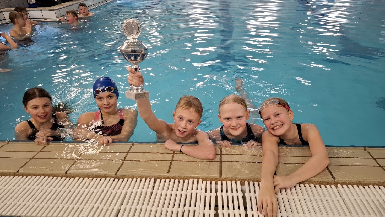 Keppt var um Halldórsbikarinn á sundmóti miðstigs í morgun. Þar var ekkert gefið eftir en sigurvegarar eftir hnífjafnt úrslitasund við 6. ÍH voru krakkarnir í sjötta bekk. Við óskum þeim innilega til hamingju.