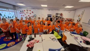 Krakkarnir í fjórða bekk voru sérstaklega heppin í morgun en þau nældu sér í gamla Glerárskólaboli sem Brynja ritari hafði geymt árum saman. Þau klæddu sig öll í bolina sína í frímínútunum og komu kennurunum sínum verulega á óvart verandi öll eins klædd.