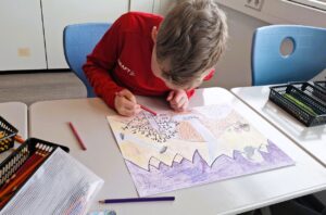 Listagyðjan hefur heldur betur snert nemendur Glerárskóla sem þessa dagana keppast við að yrkja ljóð eða skapa myndlistaverk.