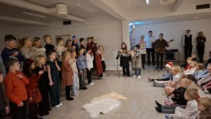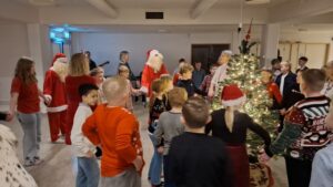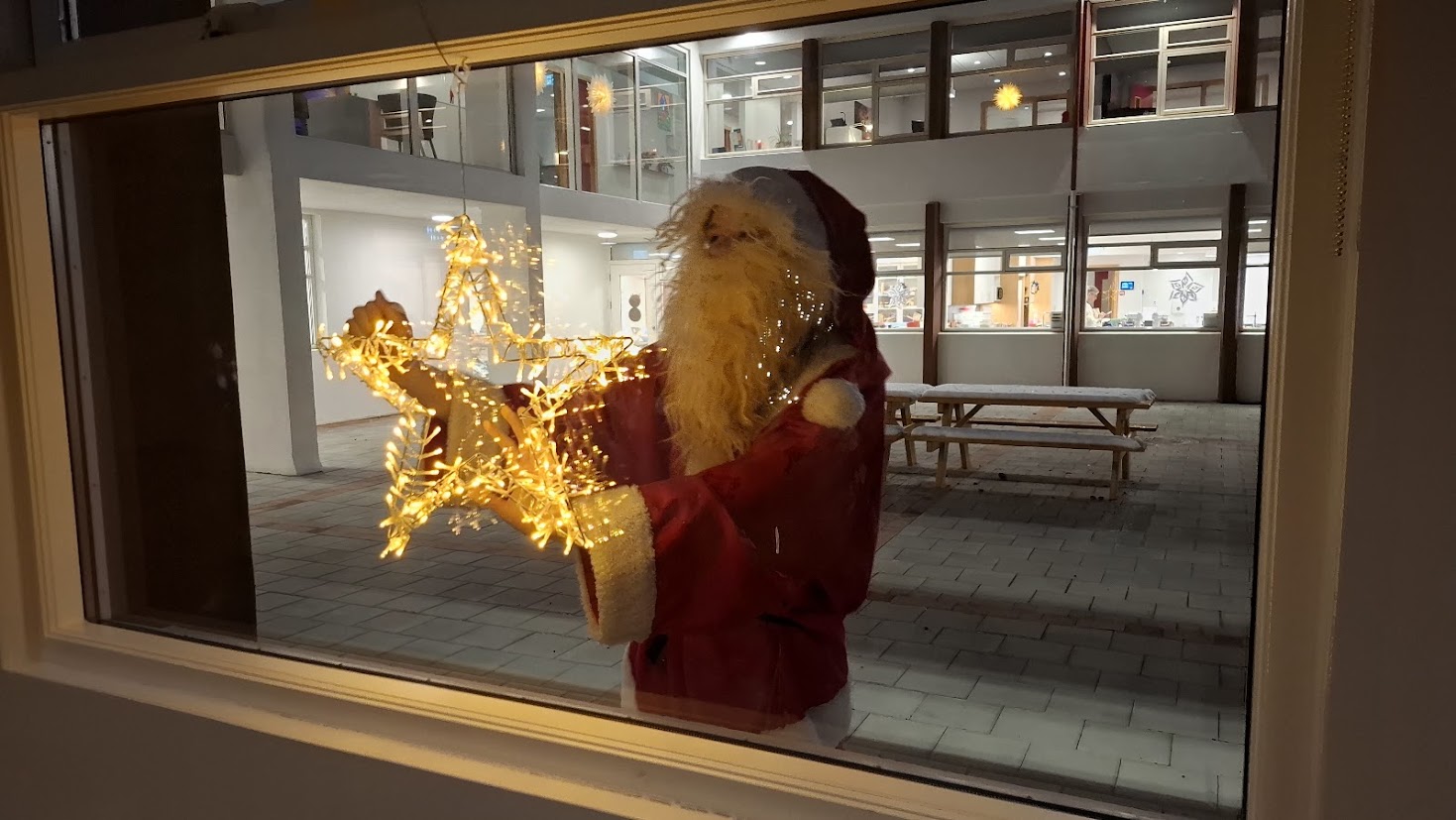 Nemendur á yngsta stigi mættu á hefðbundnum tíma í morgun og héldu sín litlu jól, Fyrst var hver bekkur fyrir sig í sinni heimastofu en síðan hittist allur hópurinn og naut skemmtiatriðis frá 4. bekk og dansaði síðan í kringum jólatréð með kátum jólasveinum. Síðar um morguninn var leikurinn endurtekinn með nemendum á miðstigi.