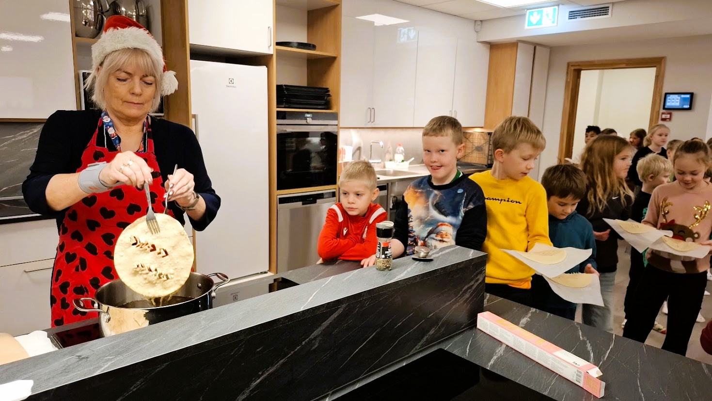 Það var sérlega skemmtilegt hjá krökkunum á yngsta stigi í laufabrauðsgerðinni í morgun. Laufabrauðsskurðurinn þótti mjög skemmtilegur en mörg barnanna voru að gera laufabrauð í fyrsta skipti.